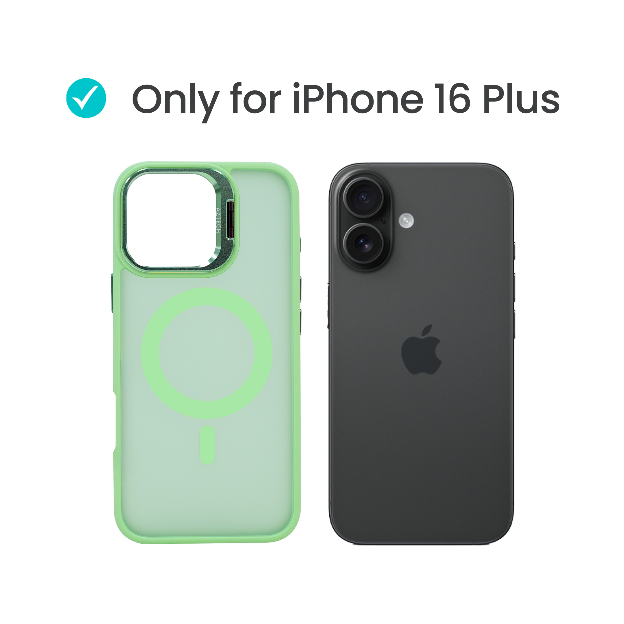 Super Shield Matte Green Case for iPhone 16 Plus with Magnetic safe and Built-in Camera Kickstand