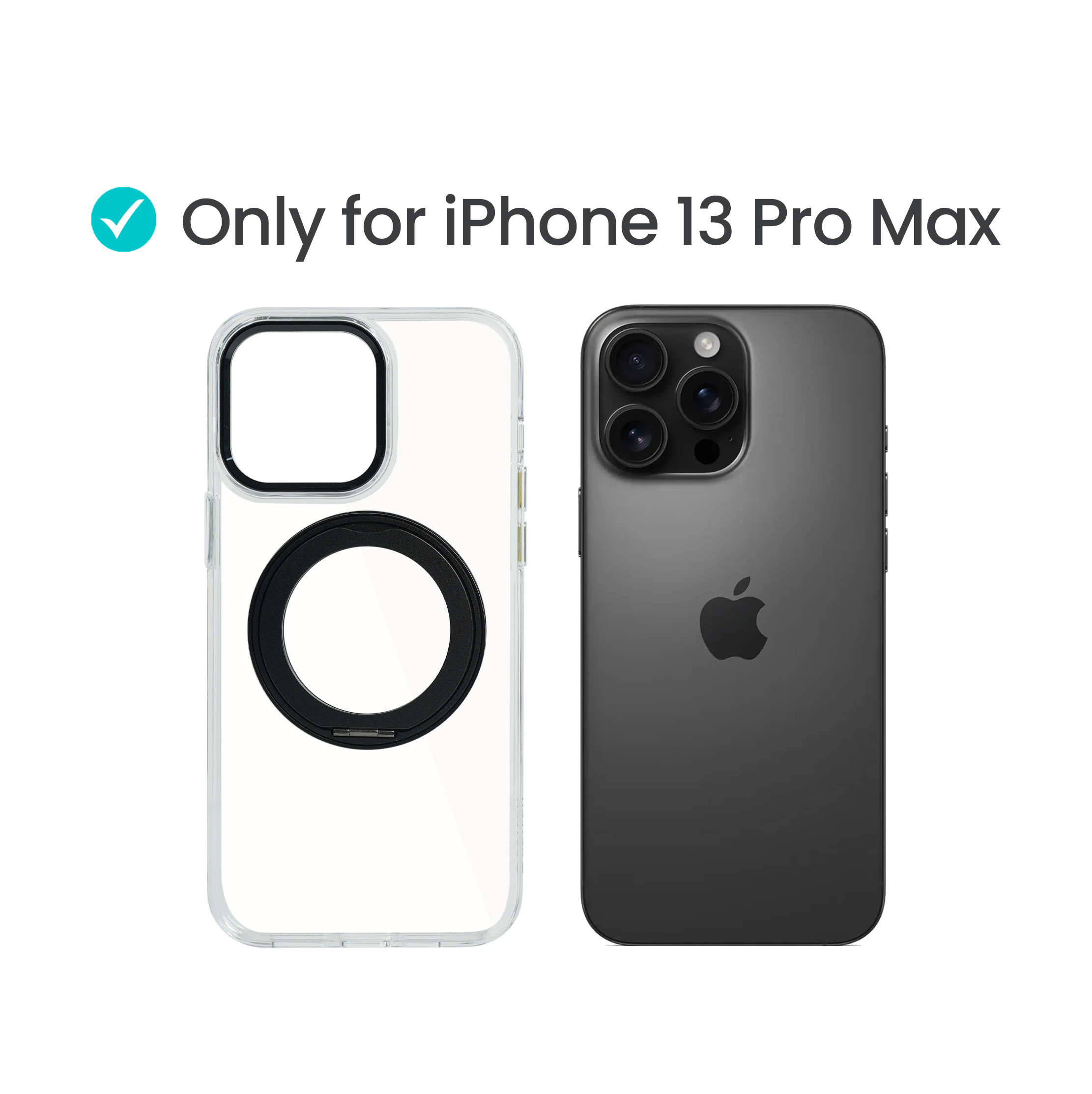 Super Snap Clear Case for iPhone 13 Pro Max with Built-in 360° Rotation Black Metal Ring and Support Magnetic Wireless Charging