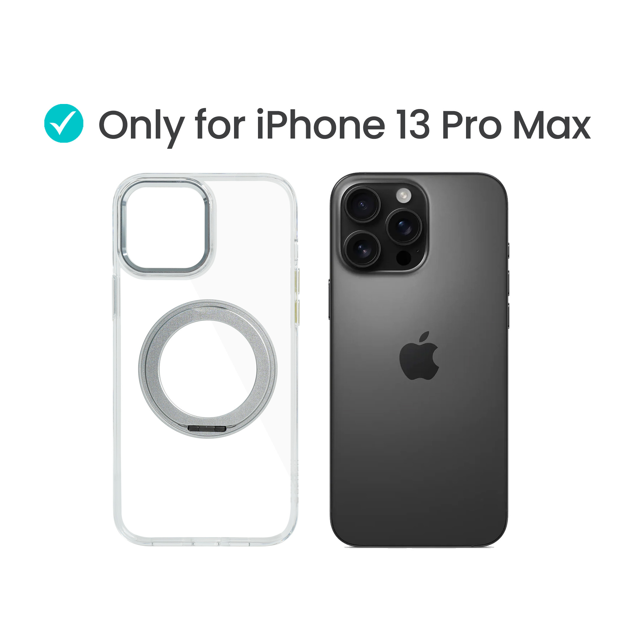 Super Snap Clear Case for iPhone 13 Pro Max with Built-in 360° Rotation Silver Metal Ring and Support Magnetic Wireless Charging