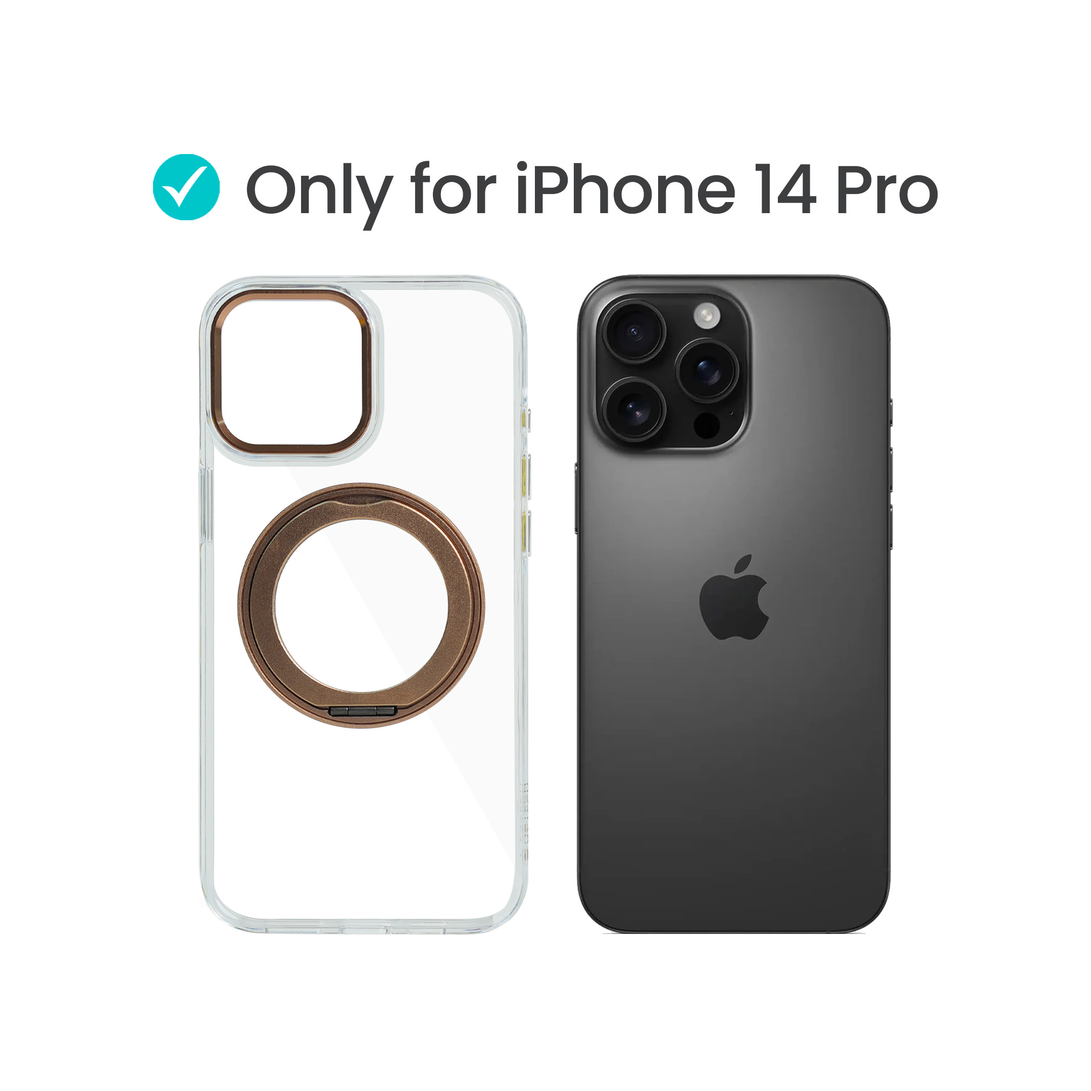 Super Snap Clear Case for iPhone 14 Pro with Built-in 360° Rotation Gold Metal Ring and Support Magnetic Wireless Charging